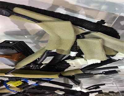 汽車部件中主要應(yīng)用概覽 1、汽車衣帽鉤雙組份吸音棉背膠;2、售后市場(chǎng)改裝地毯背面隔音棉背膠;3、門板內(nèi)襯吸音棉背膠;4、汽車空調(diào)管道包覆低密度薄型PU發(fā)泡材/雙組份保溫棉背膠;5、座椅發(fā)泡工藝模具腔體定位無紡布&橡磁片背膠。 1、橡膠發(fā)泡型海綿涂膠,用于方向盤骨架包覆、前后車燈緩沖墊片、后視鏡緩沖墊片;2、汽車頂棚、車門等線束段子用的降噪背膠海綿涂膠、無紡布涂膠,如PP毛氈,PET毛氈,以及聚脂、聚醚類的發(fā)泡PU背膠海綿。 1、儀表臺(tái)\前后風(fēng)擋組裝用半開半閉孔EPDM三元乙丙泡棉密封條背膠,汽車尾燈及高位剎車燈組裝用CR蘆丁橡膠發(fā)泡密封條背膠;2、空調(diào)出風(fēng)口EPDM/PE墊片密封條背膠;3、汽車頂棚、車門線束用固定毛氈背膠。 1、對(duì)VOC和氣味敏感的汽車空調(diào)接駁口、蒸發(fā)器海綿背膠、前后艙出風(fēng)口泡綿背膠。2、汽車線束固定消音用耐反翹海綿背膠、卷粘PU泡棉背膠。3、線束袖套型保護(hù)片背膠。4、安全帶束位調(diào)節(jié)器消音毛氈背膠,耐摩擦抗剪切。 1、對(duì)尺寸穩(wěn)定性和重工性要求較高的座椅加熱墊片背膠;2、座椅打孔通風(fēng)海綿背膠;3、座椅頭枕包覆海綿背膠。該款網(wǎng)格緯線可手?jǐn)?,?jīng)線強(qiáng)度高,容易沖型加工,兼具無基材膠帶的服帖性與無紡布膠帶的重工與尺寸穩(wěn)定性。 簇絨地毯與PP蜂窩板復(fù)合背膠,地毯吸音棉,方向盤骨架包覆皮革類背膠,車門、變速箱扶手機(jī)織布/皮革貼合IXPE發(fā)泡材,衣帽架GMT板背膠貼合PVC皮革/機(jī)織布,行李箱蓋板毛氈復(fù)合EPE發(fā)泡板或PP蜂窩板,利于后段加工。