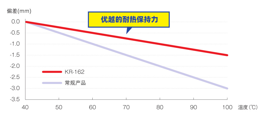 | KR-523 NW | 0.07 | 16.6 | 高溫及低溫環(huán)境作業(yè)下的粘性良好 |