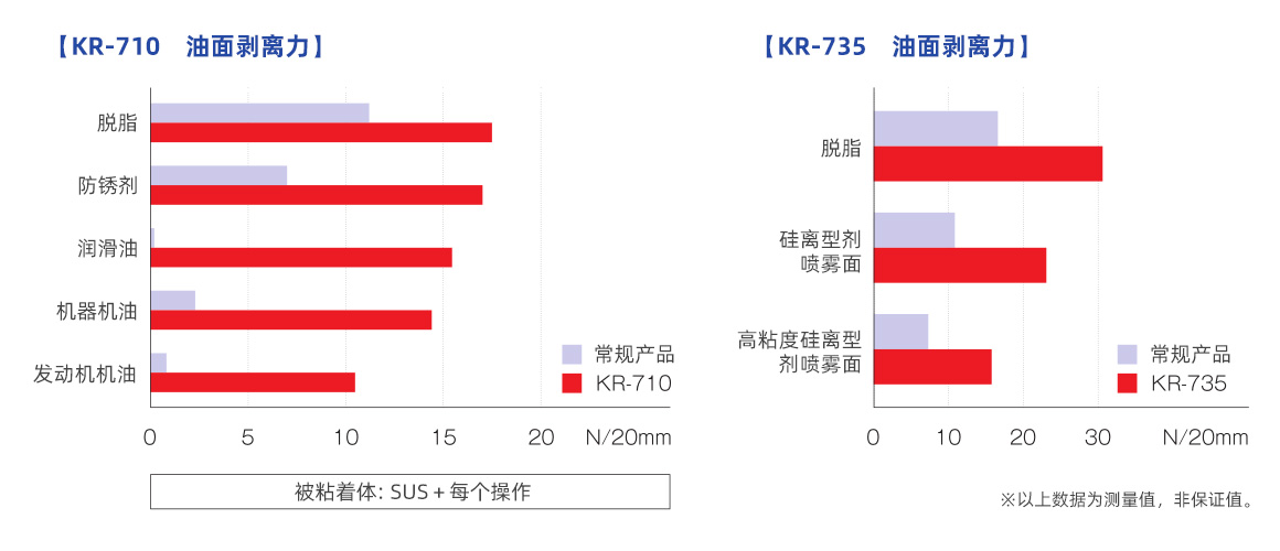 | KR-710 NW | 0.07 | 16.0 | 對(duì)部分潤(rùn)滑油附著表面的粘性良好 |