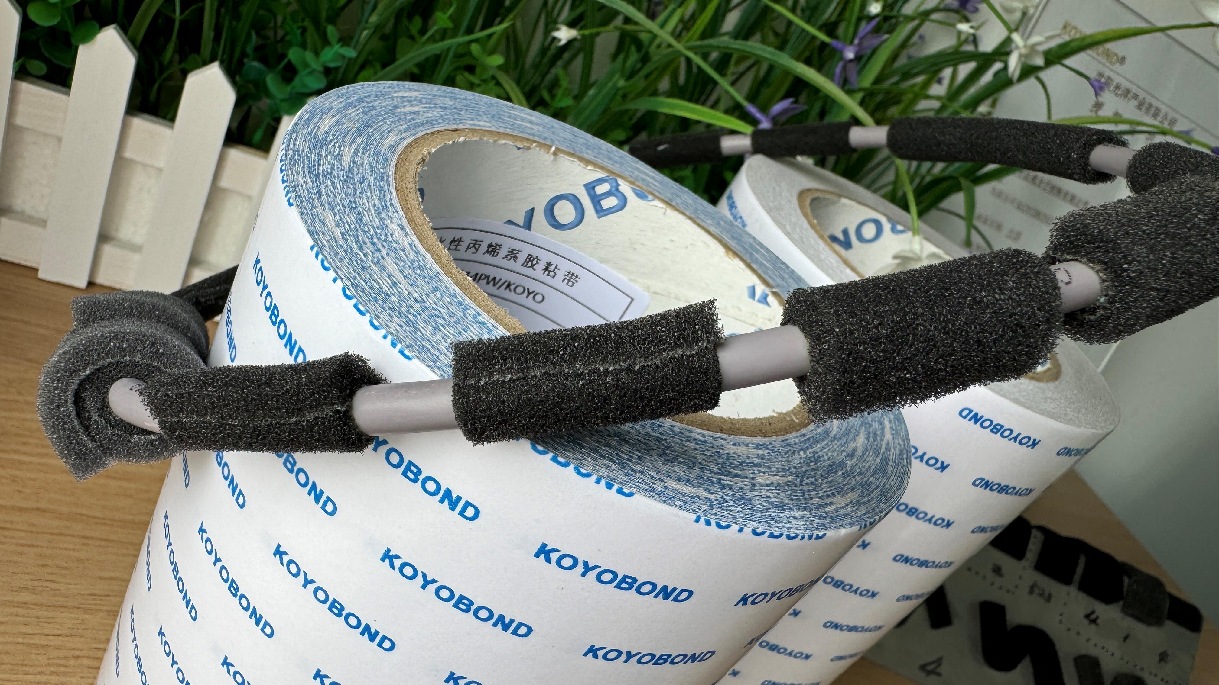 ○ 以乳液型丙烯酸膠黏劑涂布于高滲透棉紙制成的雙面膠帶,相較溶劑型膠帶產(chǎn)品可以實(shí)現(xiàn)更低有機(jī)化合物釋放量以及更低的氣味表現(xiàn),同時(shí)滿足長(zhǎng)期耐溫范圍-40-100℃,短期120℃。